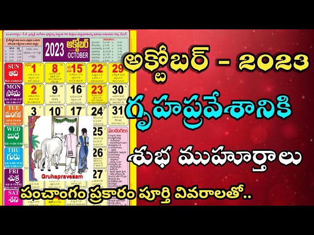 October 2023 Gruhapravesam Muhurtalu in telugu | House warming